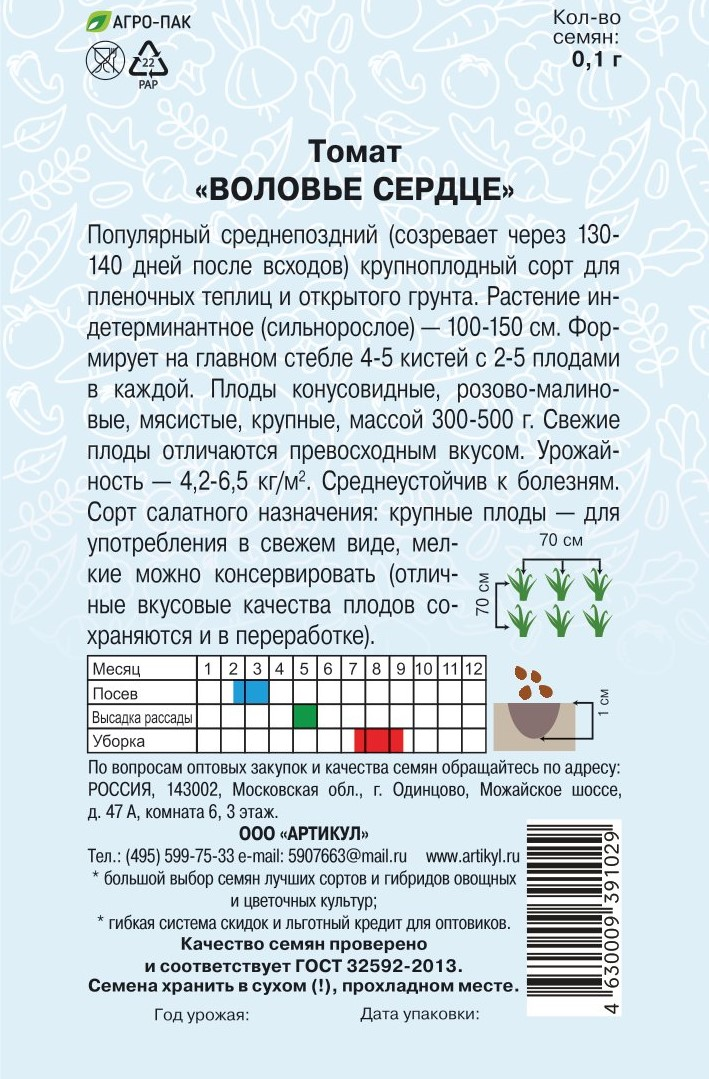 Популярный среднепоздний (созревает через 130-140 дней после всходов) крупноплодный сорт для плёночных теплиц и открытого грунта. Растение индетерминантное (сильнорослое) – 100-150 см. Формирует на главном стебле 4-5 кистей с 2-5 плодами в каждой. Плоды конусовидные, розово-малиновые, мясистые, крупные, массой 300-500 г. Свежие плоды отличаются превосходным вкусом. Урожайность – 4,2-6,5 кг/м2. Среднеустойчив к болезням. Сорт салатного назначения: крупные плоды – для употребления в свежем виде, мелкие можно консервировать (отличные вкусовые качества плодов сохраняются и в переработке). + Томаты уменьшают уровень холестерина в крови; рекомендуются при заболеваниях желудочно-кишечного тракта (легко перевариваются и усваиваются). Плоды богаты солями калия, железа, магния, кобальта и цинка.