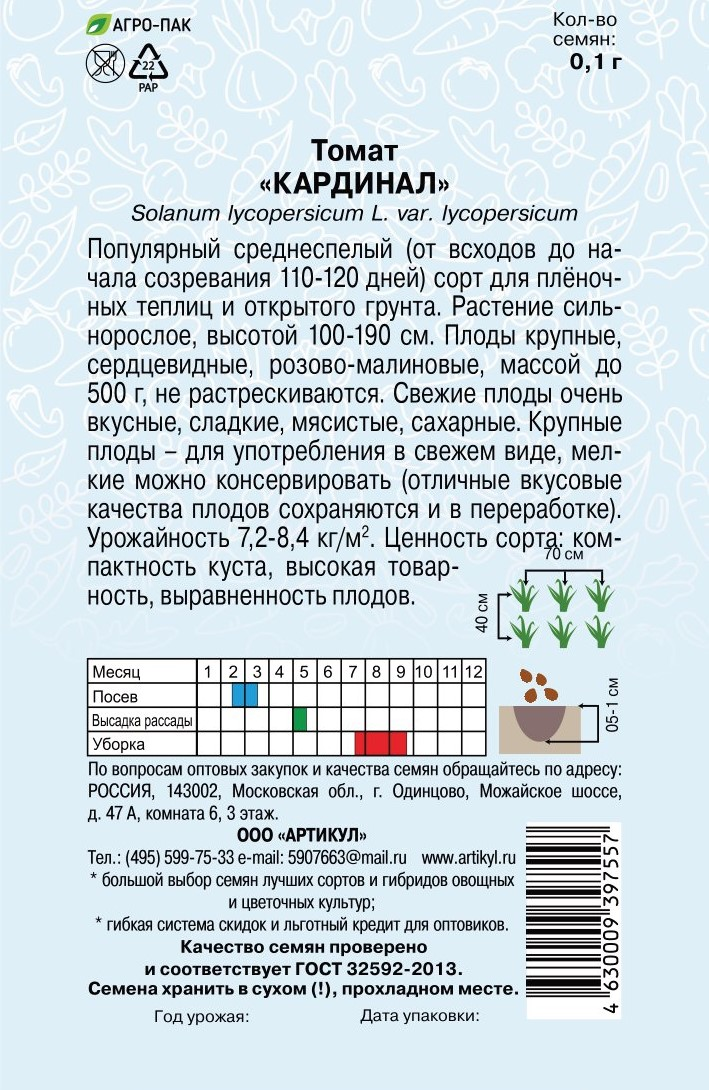 Семена Артикул Томат Кардинал, 2г