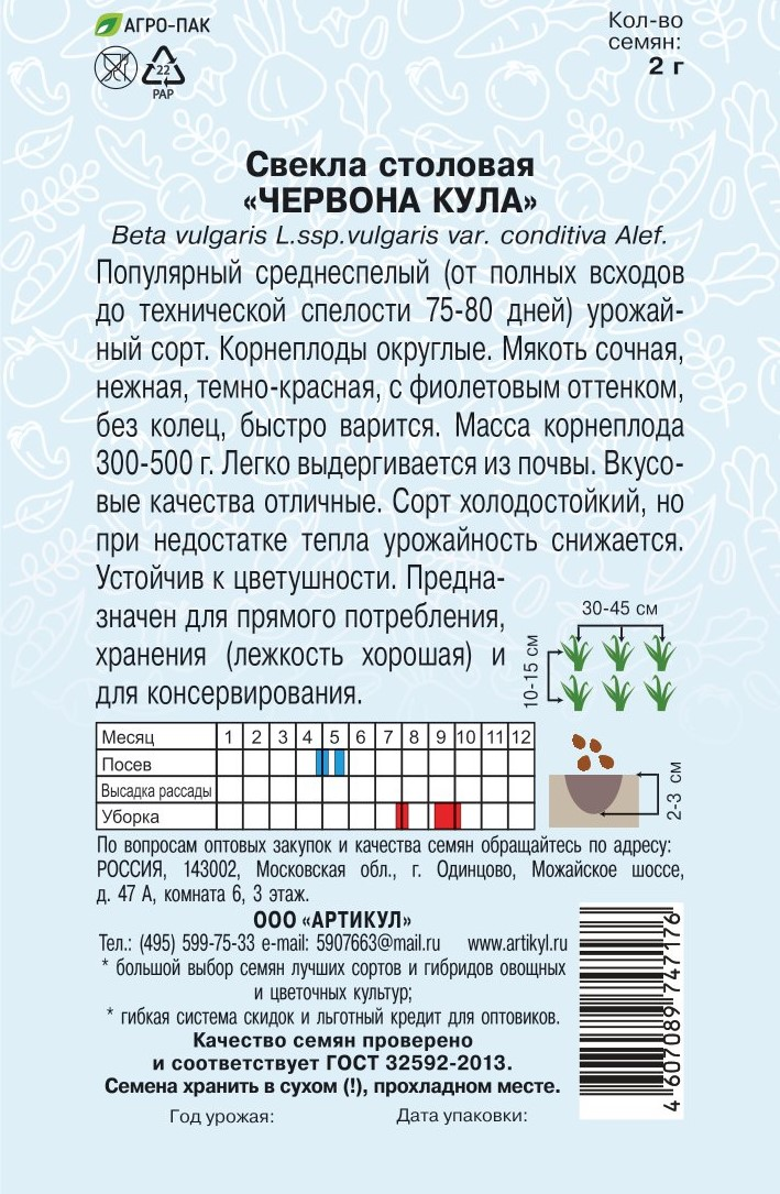 Семена Артикул Свекла столовая Червона Кула, 10г