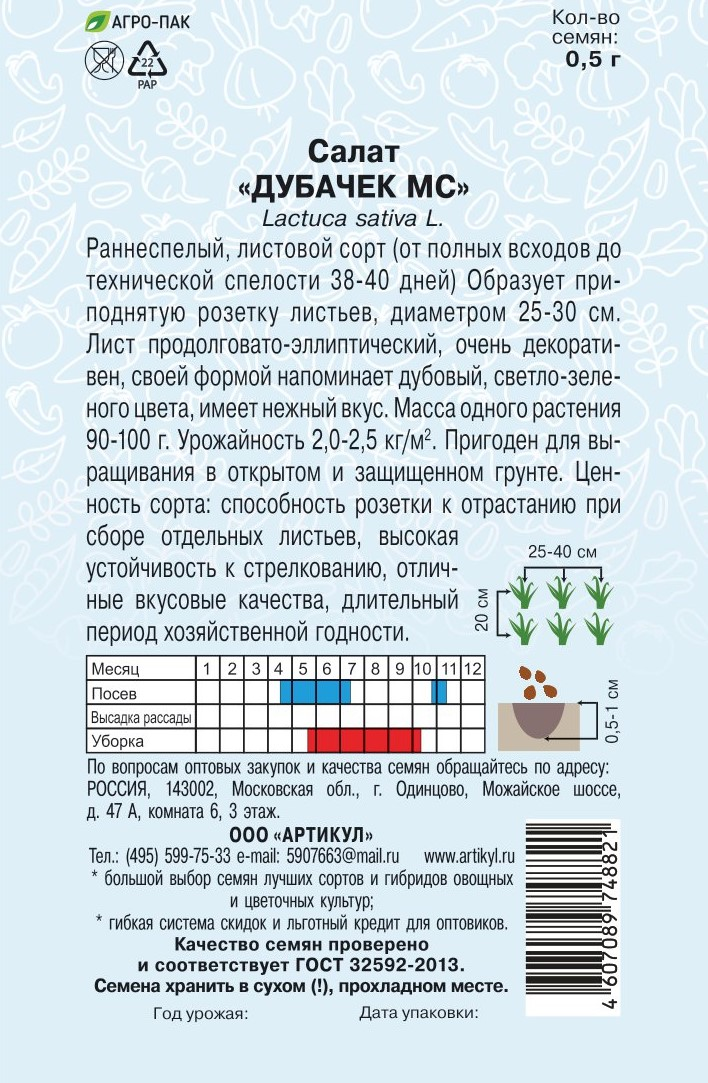 Листовой раннеспелый сорт (40-50 дней от всходов). Листья декоративные, резные, с нежным вкусом. Розетка диаметром 25-30 см. Посев: в начале мая семенами в грунт на глубину 1-1,5 см. Расстояние между растениями после прореживания 25-30 см. Выращивают в открытом и защищенном грунте. Уход: поливы под корень и подкормки азотно-фосфорными удобрениями. Сбор урожая: в течение всей вегетации. После срезки листьев розетка снова отрастает. Полукочанный и кочанный с волнистыми листьями, хрустящий.