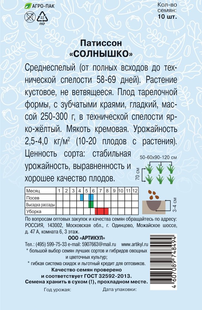 Семена Артикул Патиссон Солнышко, 10г