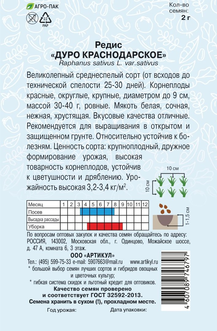 Семена Артикул Редис Дуро Краснодарское, 10г