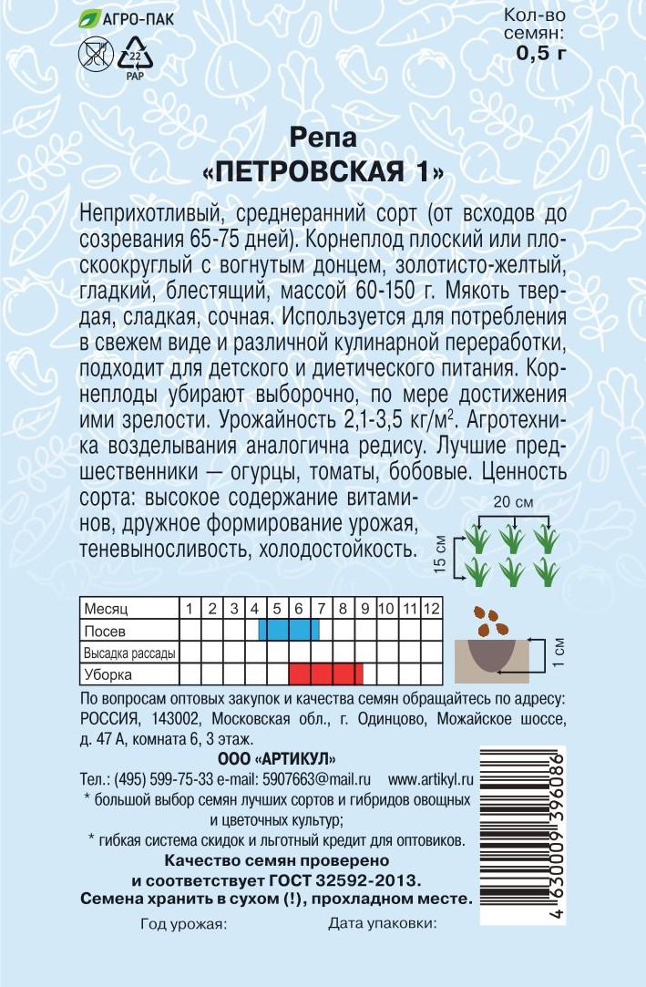 Семена Артикул Репа Петровская 1, 10г
