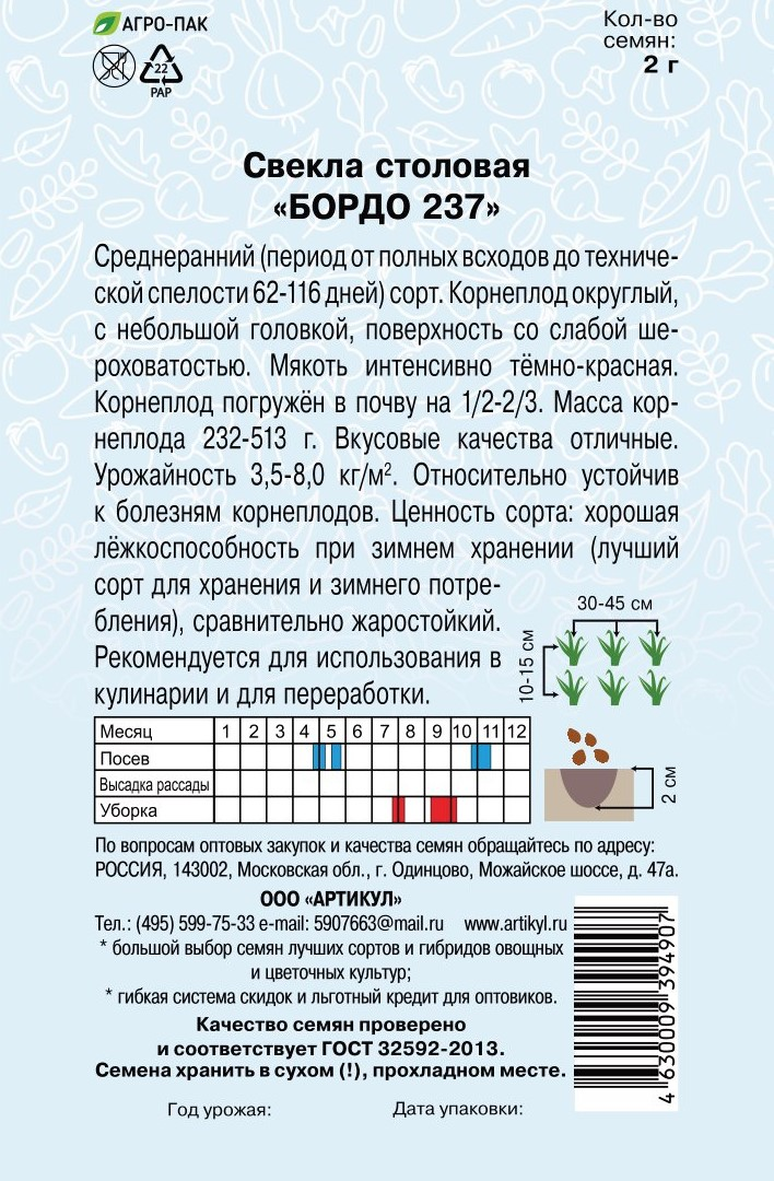 Семена Артикул Свекла столовая Бордо 237, 10г