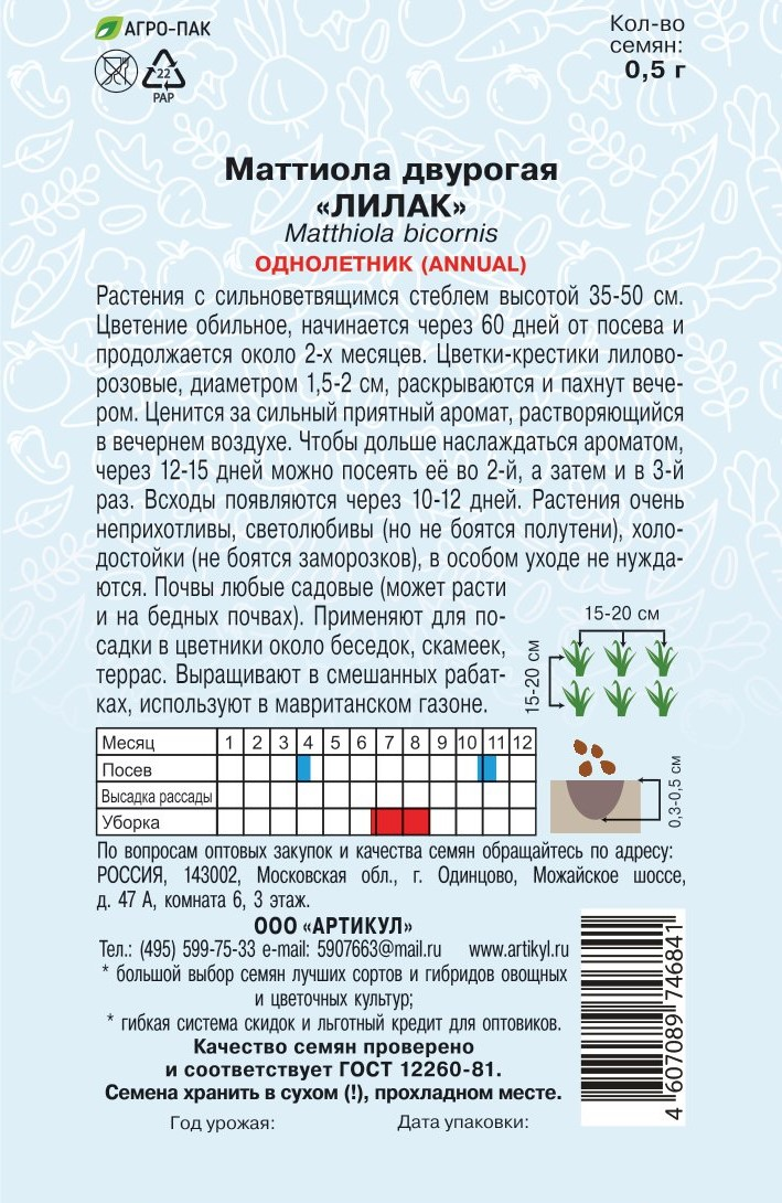 Семена Артикул Маттиола Двурогая Лилак, 10г
