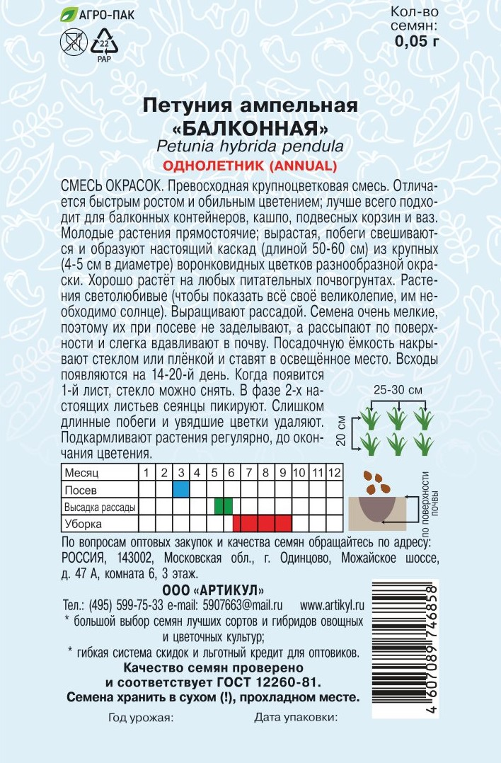 Семена Артикул Петуния Ампельная Балконная, 10г