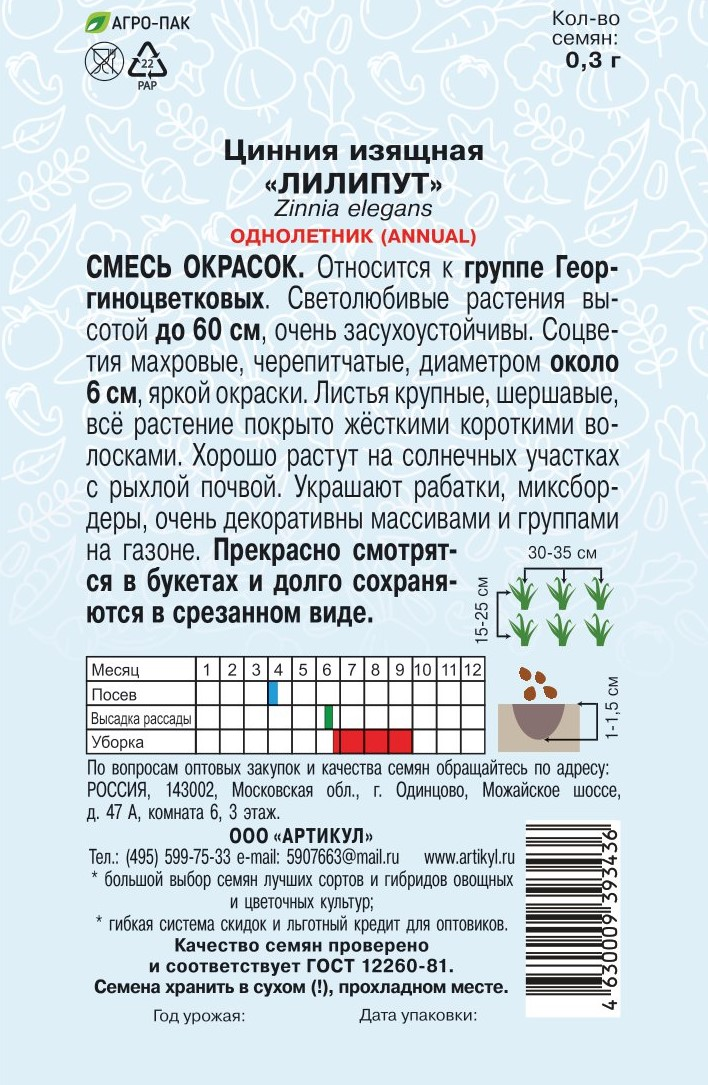 Семена Артикул Цинния Изящная Лилипут, 10г