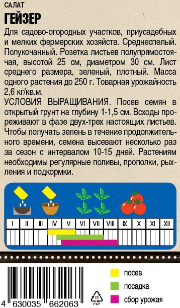 Семена Тимирязевский питомник Салат Гейзер, 3г