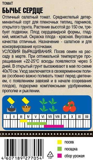 Семена Тимирязевский питомник Томат Бычье Сердце, 2г