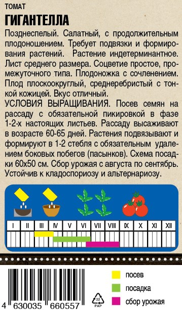 Семена Тимирязевский питомник Томат Гигантелла, 2г