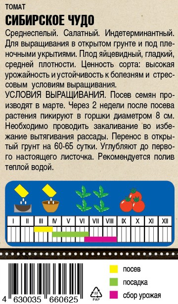 Семена Тимирязевский питомник Томат Сибирское Чудо, 2г
