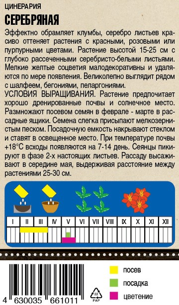 Семена Тимирязевский питомник Цинерария Серебряная, 1г