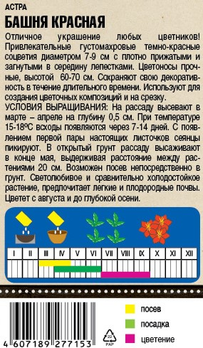 Семена Тимирязевский питомник Астра Башня красная, 1г