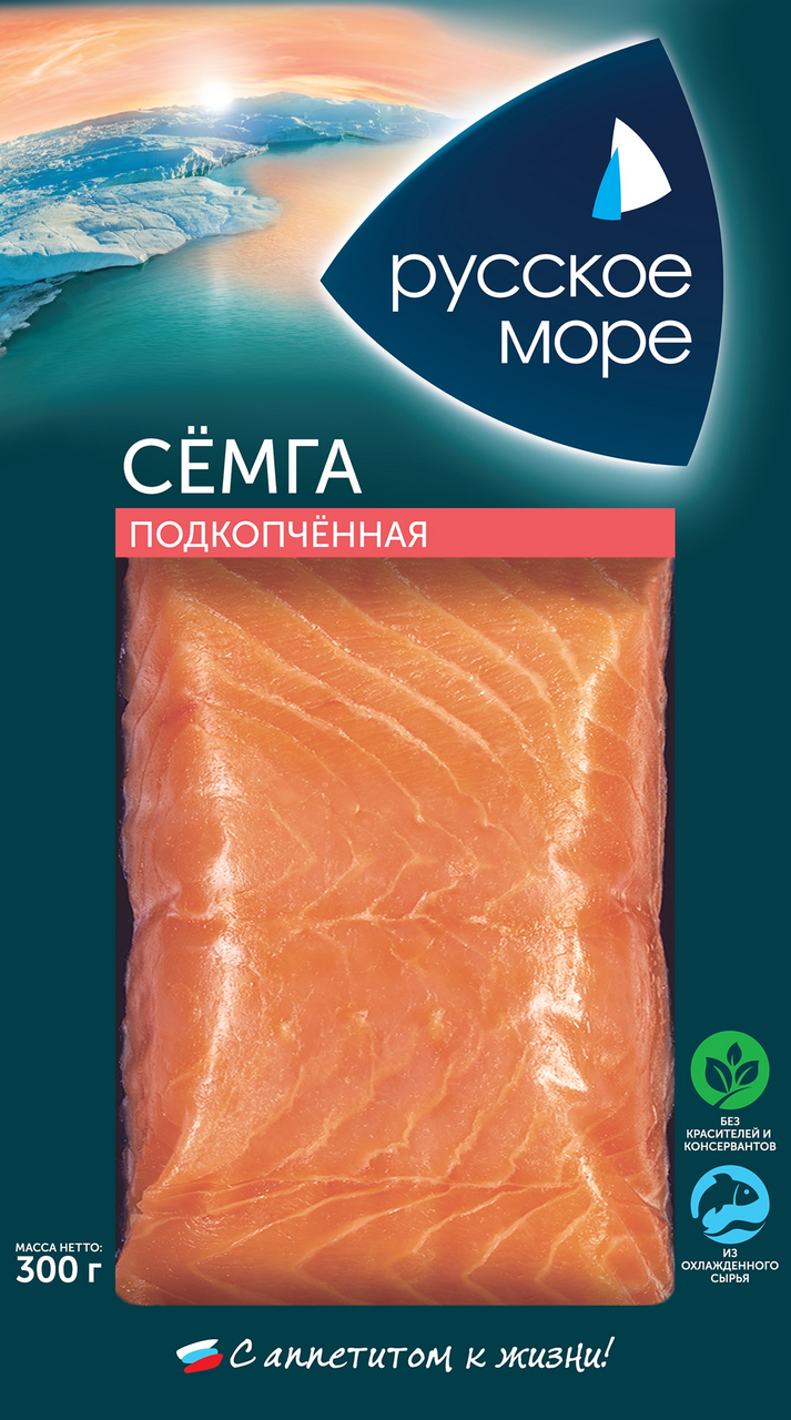 Деликатесная семга — это нежный лосось, в меру соленый и ароматный. Идеально подходит для бутербродов с творожным сыром и свежей зеленью — луком, укропом, базиликом. Экспериментируйте и наслаждайтесь вкусом семги! В северной Норвегии фермеры выращивают лосося премиального качества специально для марки Русское море. Вся рыба питается экологически чистым кормом и живет в прямо в море! Сразу после вылова лосось отправляется в Россию, где и готовится по проверенным рецептам. Продукция аквакультуры. Контроль качества на всех этапах производства. Не содержит усилителей вкуса и ГМО