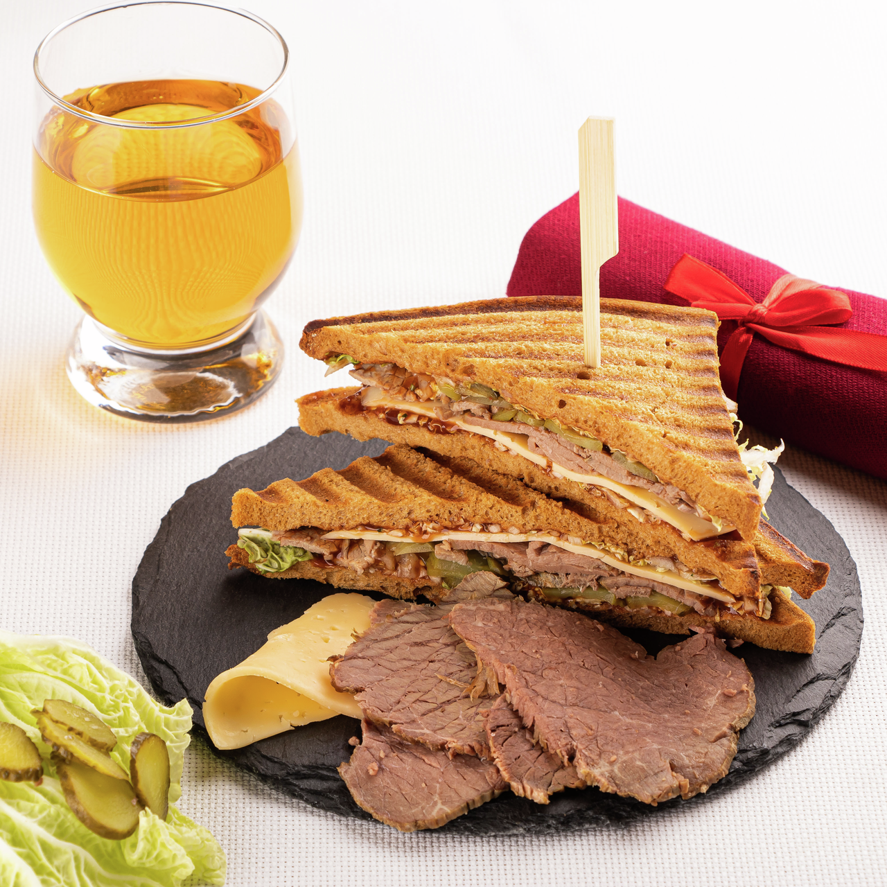 Основа аппетитного сэндвича — поджаренный на гриле хлеб. В начинке только натуральные ингредиенты: говядина, хрустящая китайская капуста, полутвердый сыр, свежая кинза и пикантные маринованные огурчики. Завершают композицию ароматный соус Барбекю и соус Чили для легкой остринки. Сэндвич-гриль удобно брать с собой, он идеально подойдет для быстрого перекуса в дороге, дома и на работе.
