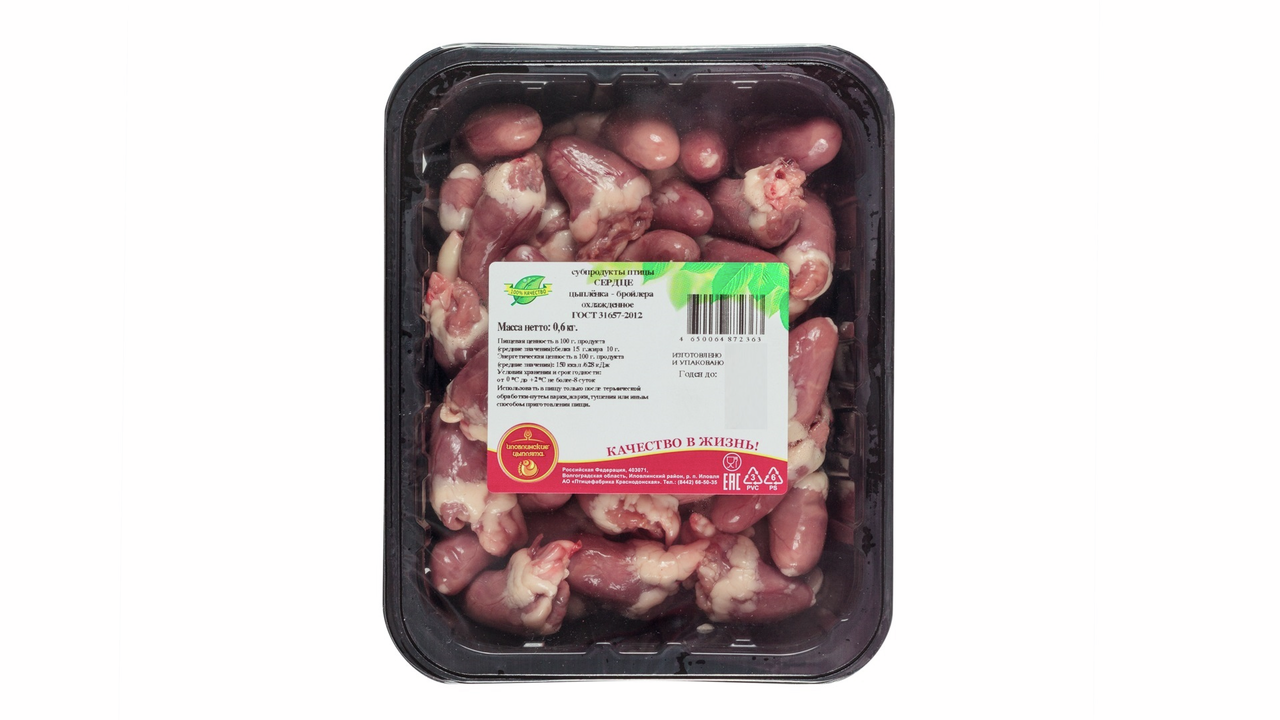 Сердце цыпленка-бройлера Иловлинские цыплята охлажденное, 600г