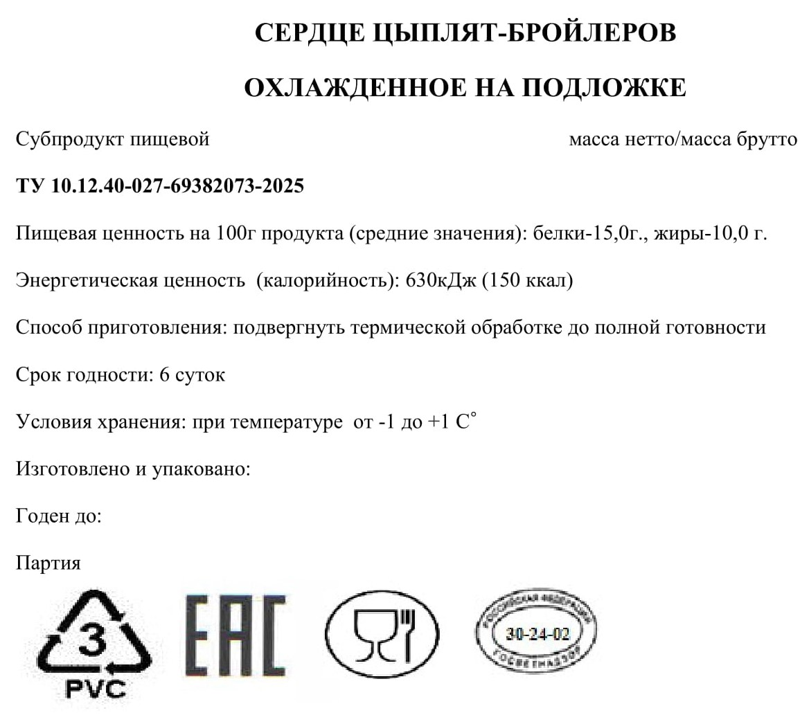 Сердце цыпленка-бройлера Экоптица охлажденное, ~900г