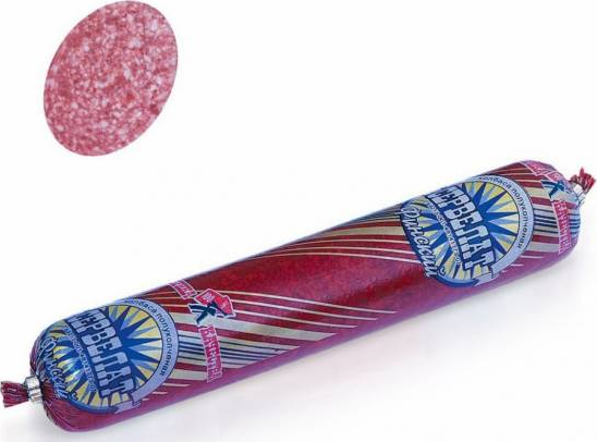 Отличается особым вкусом и притягательным ароматом пряностей и копчения. Производится из высококачественной говядины и свинины с добавлением сухого молока и небольшого количества шпика. Продукт не содержит генно-модифицированных компонентов и вредных добавок. Сервелат имеет прекрасный внешний вид и упругую структуру. Герметичная упаковка сохраняет высокое качество продукта. Идеально подходит для приготовления бутербродов и пиццы. Станет прекрасным украшением праздничного стола.