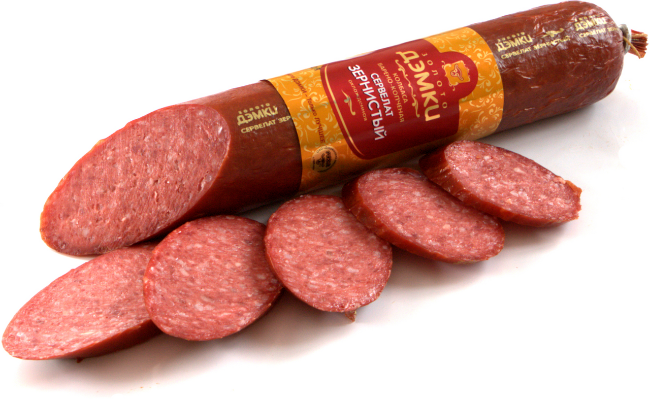 Отличается особым вкусом и притягательным ароматом пряностей и копчения. Производится из высококачественной говядины и свинины с добавлением сухого молока и небольшого количества шпика. Продукт не содержит генно-модифицированных компонентов и вредных добавок. Сервелат имеет прекрасный внешний вид и упругую структуру. Герметичная упаковка сохраняет высокое качество продукта. Идеально подходит для приготовления бутербродов и пиццы. Станет прекрасным украшением праздничного стола.