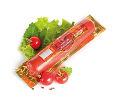 Отличается особым вкусом и притягательным ароматом пряностей и копчения. Производится из высококачественной говядины и свинины с добавлением сухого молока и небольшого количества шпика. Продукт не содержит генно-модифицированных компонентов и вредных добавок. Сервелат имеет прекрасный внешний вид и упругую структуру. Герметичная упаковка сохраняет высокое качество продукта. Идеально подходит для приготовления бутербродов и пиццы. Станет прекрасным украшением праздничного стола.