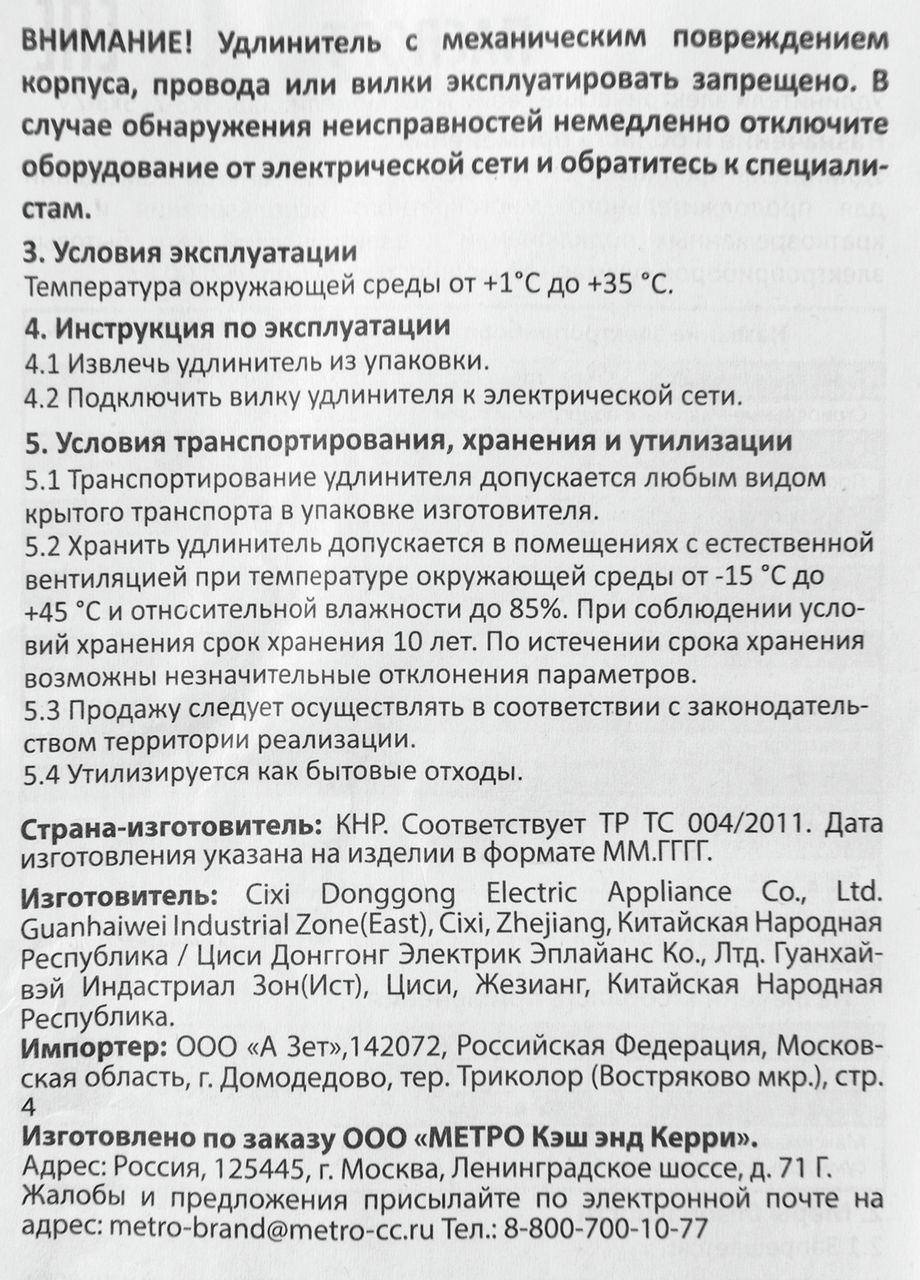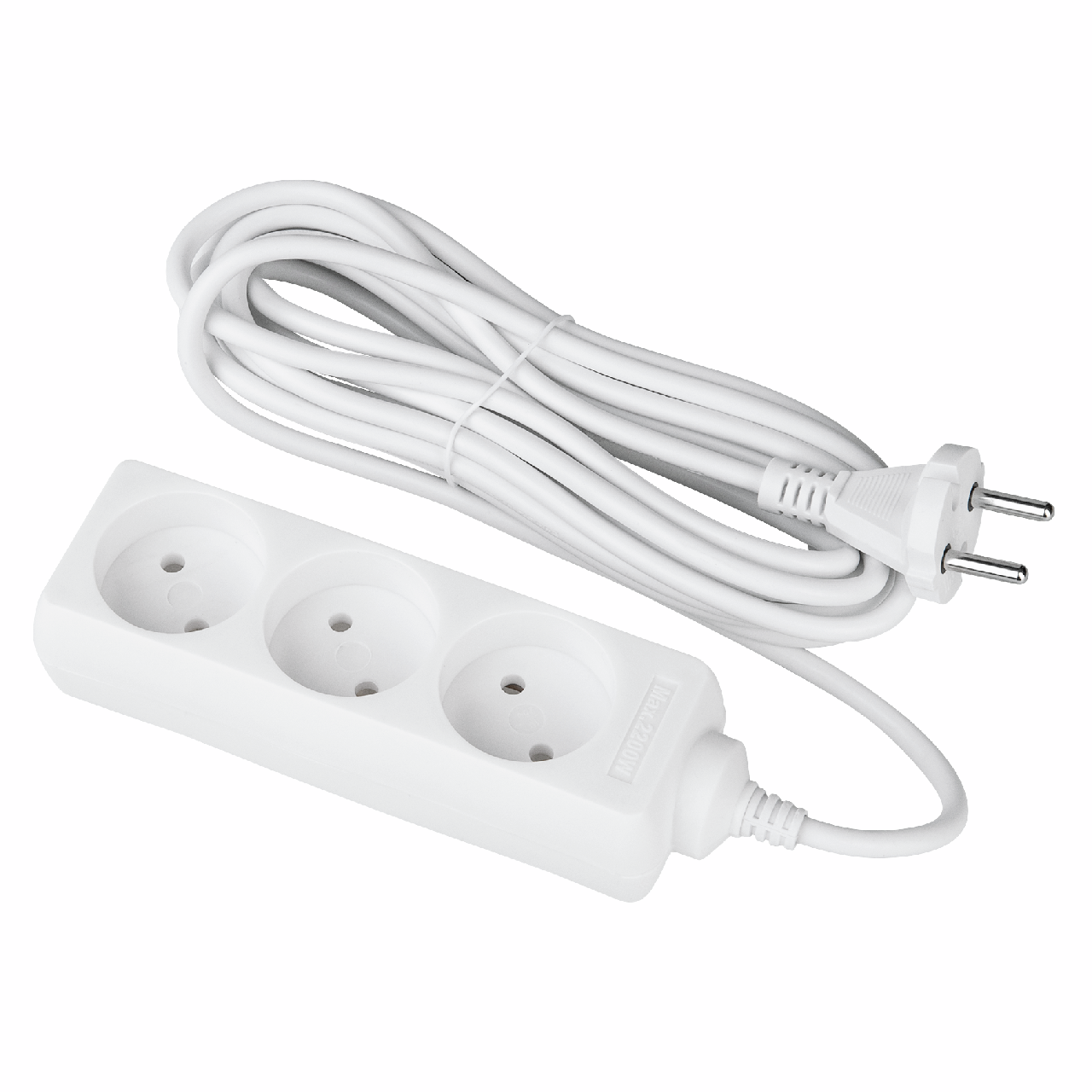 Aro Удлинитель сетевой-Z, 3 x 5 м – незаменимый предмет дома, в поездке и на даче. Он позволяет подключать к сети и использовать сразу три устройства. При этом суммарная мощность электроприборов не должна превышать 2200 Вт. Длина провода удлинителя составляет 5 метров. В нем предусмотрена функция заземления. Расположение гнезд классическое – в один ряд. Удлинитель выполнен в универсальном и лаконичном белом цвете, поэтому не будет привлекать к себе лишнего внимания и останется практически незаметным в интерьере помещения.