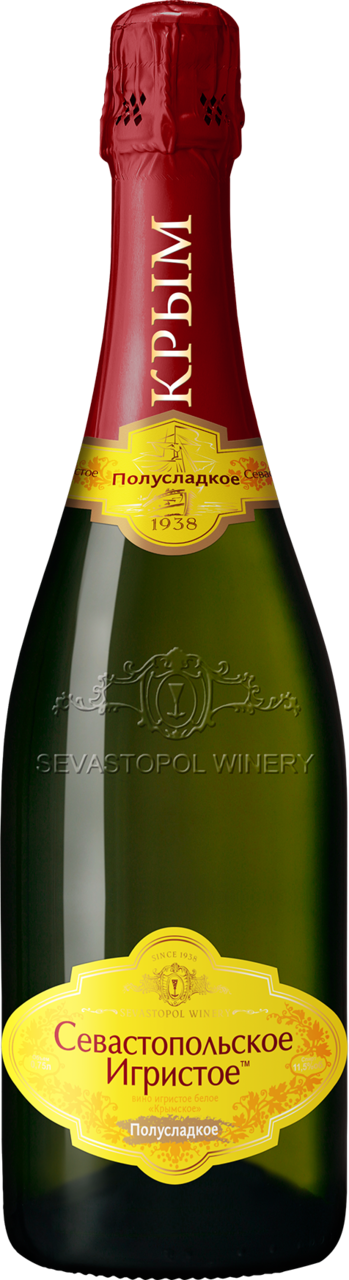 Вино игристое SEVASTOPOLSKOE Крымское белое полусладкое, 0,75 л