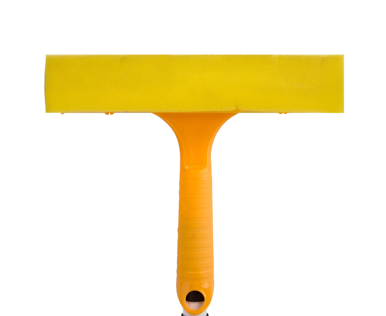 Швабра для мойки окон с телескопической ручкой, 1 штука. Длина ручки: 130 см. Размер насадки: 20 см. Материал: пластик, поролон. Цвет: желтый, синий. Эффективно удаляет загрязнения с помощью съемной насадки из поролона и собирает жидкость со стекла благодаря мягкой насадке. Эта уникальная щетка позволяет мыть окна и рамы одновременно. С минимальным расходом моющего средства и воды позволяет довести до блеска любые гладкие поверхности, не прилагая особых усилий. Срок годности не ограничен.