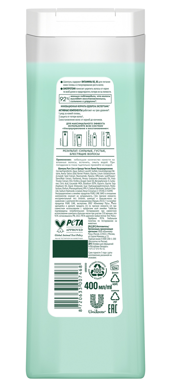 Для укрепления и восстановления волос попробуйте шампунь Pure Line от бренда Чистая Линия Ультраукрепление. В составе шампуня витамины В3, B5 для питания кожи головы и стимулирования роста волос. Формула с биопротеином помогает укрепить волосы от корня по всей длине и предотвратить потерю из-за ломкости. Результат: сильные, густые, блестящие волосы.