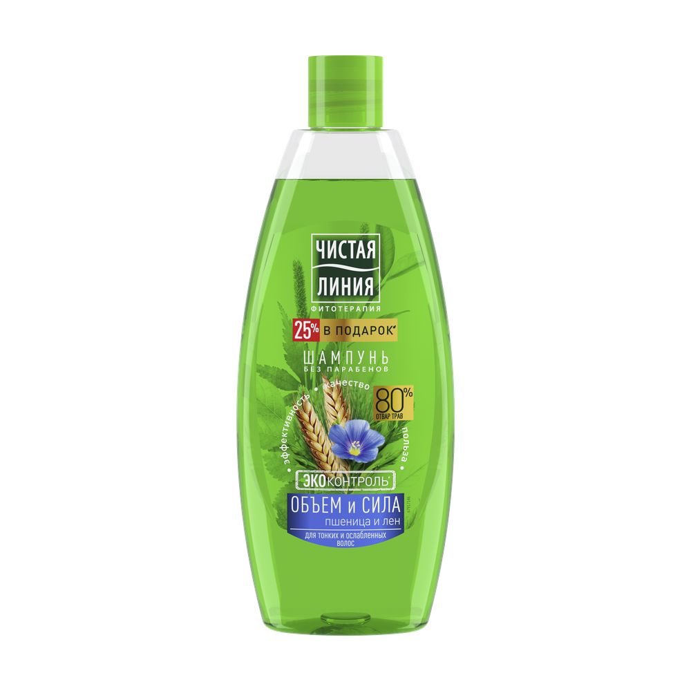 Шампунь Чистая Линия Фитотерапия Объем и сила Пшеница и лен для тонких и ослабленных волос, 600мл