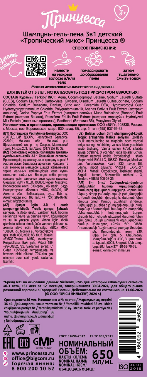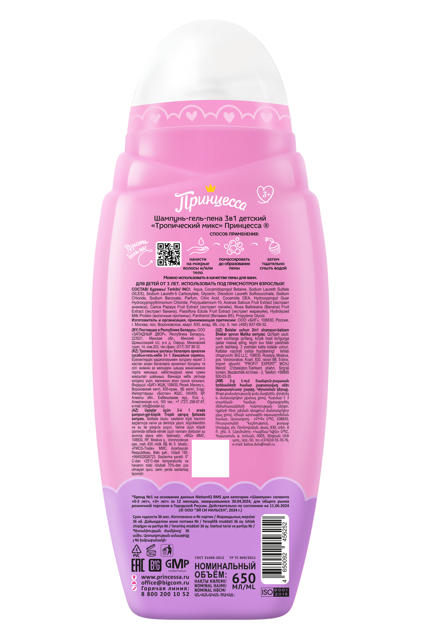 Шампунь-гель-пена Принцесса тропический микс 3в1, 650мл