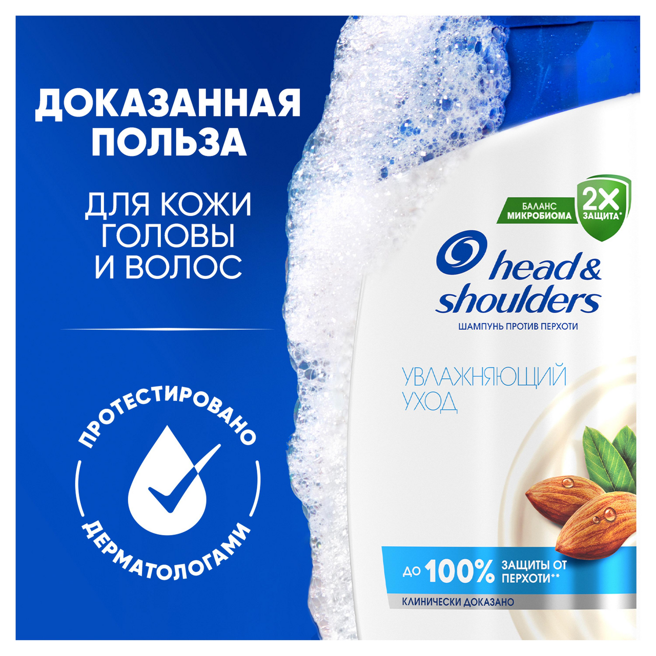 Шампунь против перхоти Head & Shoulders (Хэд энд Шолдерс) Увлажняющий Уход с миндальным маслом и кокосовым молоком мягко очищает и увлажняет сухую кожу головы и волосы, придавая им великолепный здоровый вид и ощущение свежести. Обеспечивает до 100% защиты от перхоти*. Эффективен даже против стойкой перхоти. Обновленная формула с активным ингредиентом Пироктон Оламином удаляет как видимую, так и невидимую перхоть, доставляя в поры в 2Х больше защитных ингредиентов. Клинически проверенная и дерматологически протестированная pH-сбалансированная формула делает волосы и кожу головы чистыми и свежими. Шампунь для женщин для ежедневного использования с формулой Баланса микробиома устраняет основную причину возникновения перхоти и поддерживает сбалансированный микробиом кожи головы. Увлажняющий шампунь для волос уменьшает проблемы и увлажняет кожу головы, избавляя волосы и кожу от перхоти. Для оптимального результата использовать при каждом мытье головы.