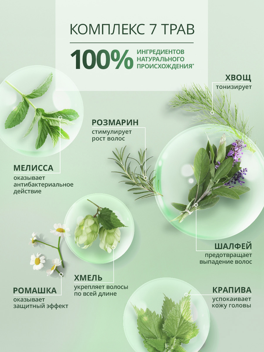 Aqua, sodium laureth sulfate, sodium chloride, cocamidopropyl betaine, chamomilla recutita (matricaria) flower extract , equisetum arvense extract, salvia officinalis (sage) leaf extract, rosmarinus officinalis (rosemary) leaf extract, urtica dioica (nettle) extract, melissa officinalis (balm mint) leaf extract, humulus lupulus (hops) extract, coco-glucoside, caprylyl capryl glucoside, peg-7 glyceryl cocoate, glycol distearate, parfum, citric acid, laureth-4, polyquaternium-10, hydrogenated castor oil, peg-40 hydrogenated castor oil, sodium benzoate, butylene glycol, linalool, hexyl cinnamal.