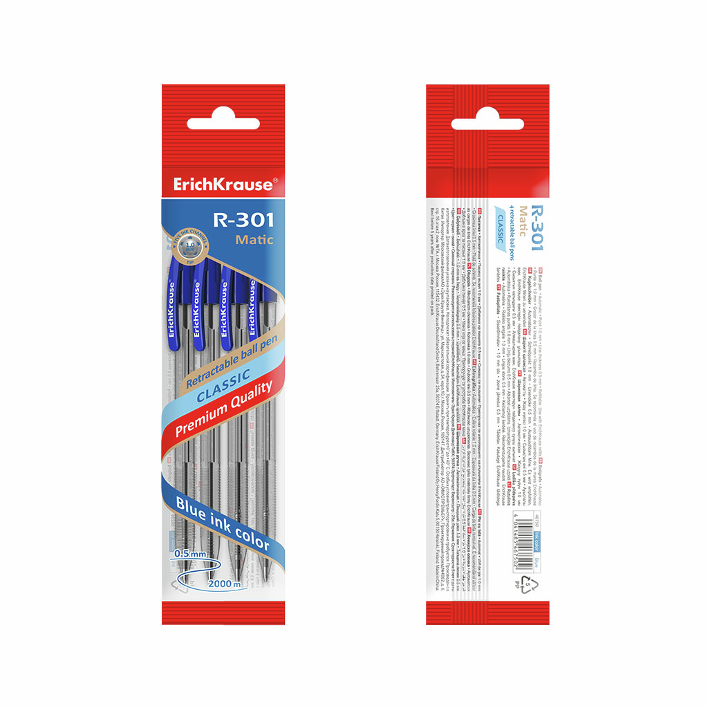 Ручки шариковые автоматических Erich Krause R-301 Classic Matic 1мм, 4шт