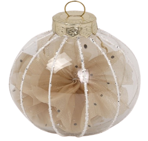 Шар B&H богема с декором внутри бежевый представляет собой украшение традиционной формы. Он служит неотъемлемой частью декора новогодних елей и сосен, может применяться для размещения в жилых комнатах, офисных помещениях, на листьях и стеблях комнатных растений.