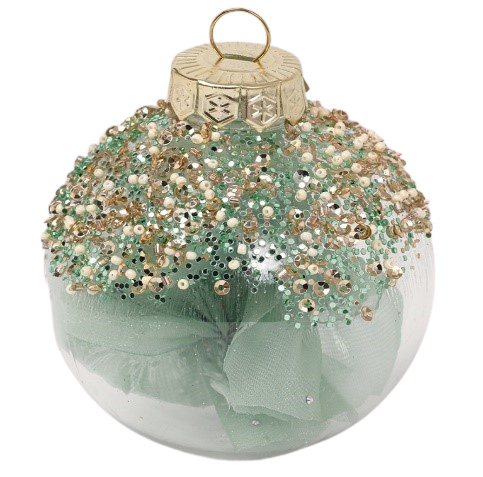 Шар елочный B&H Богема с декором внутри и бусинами голубой