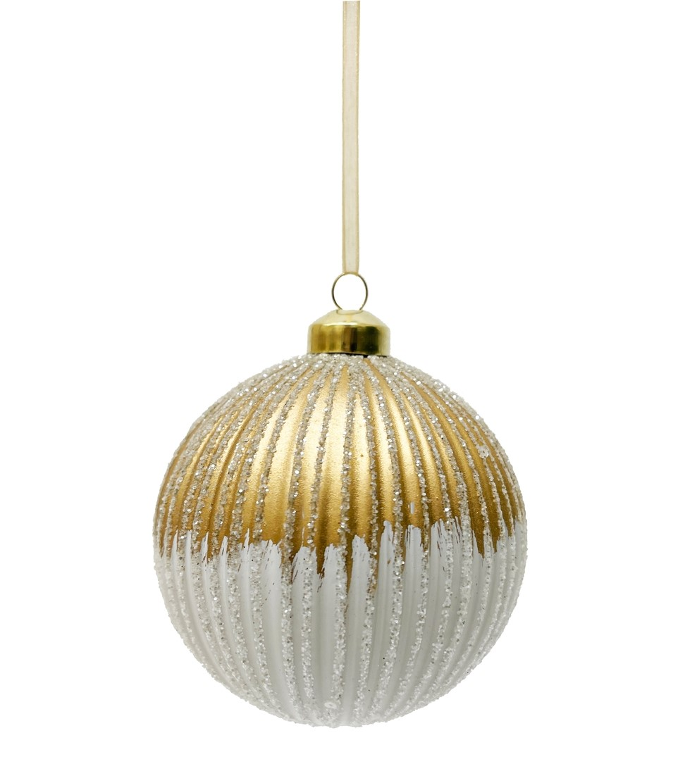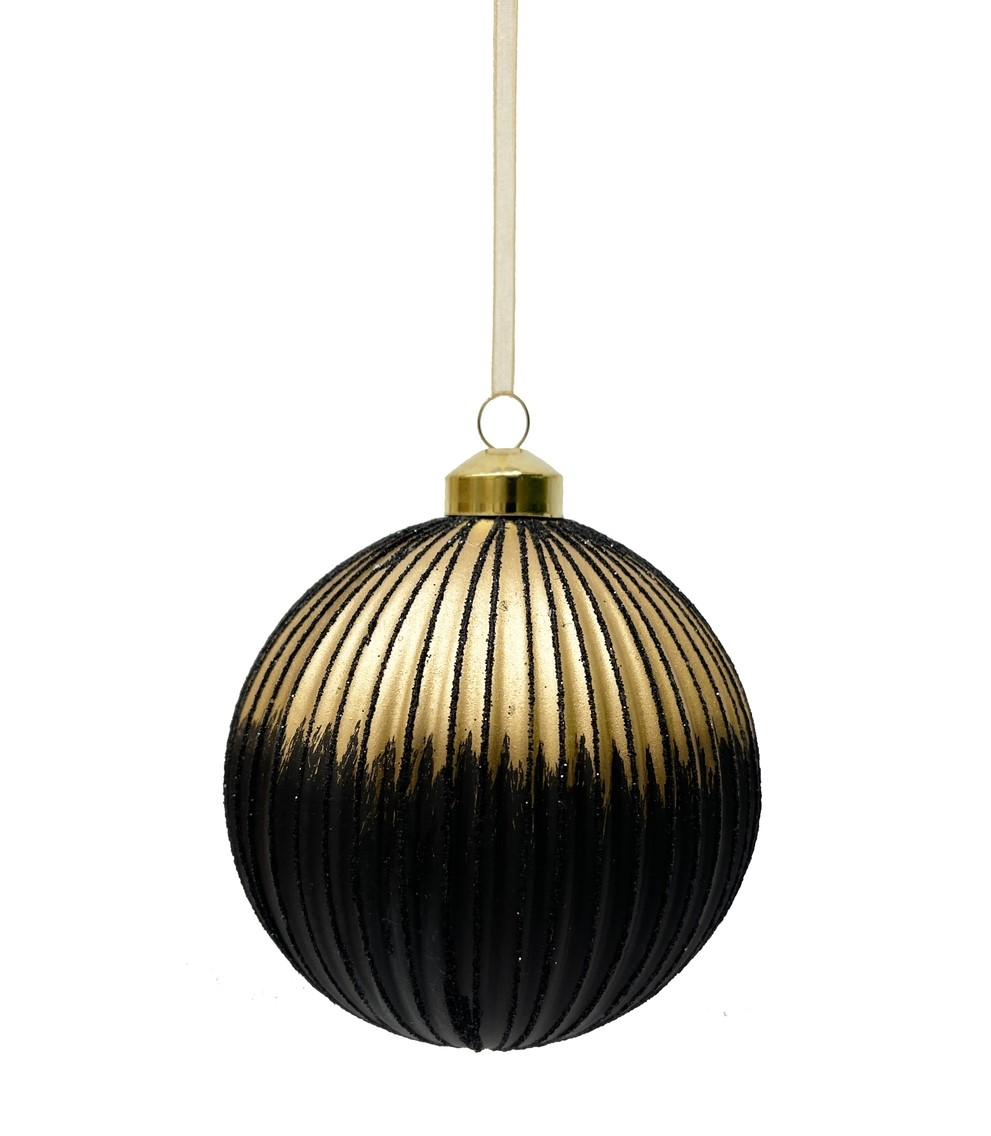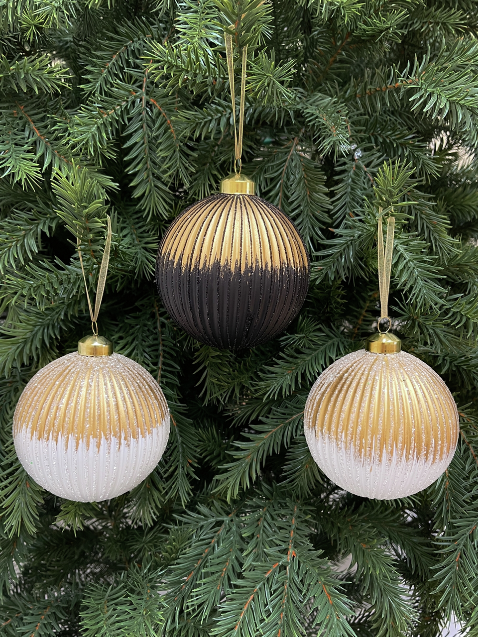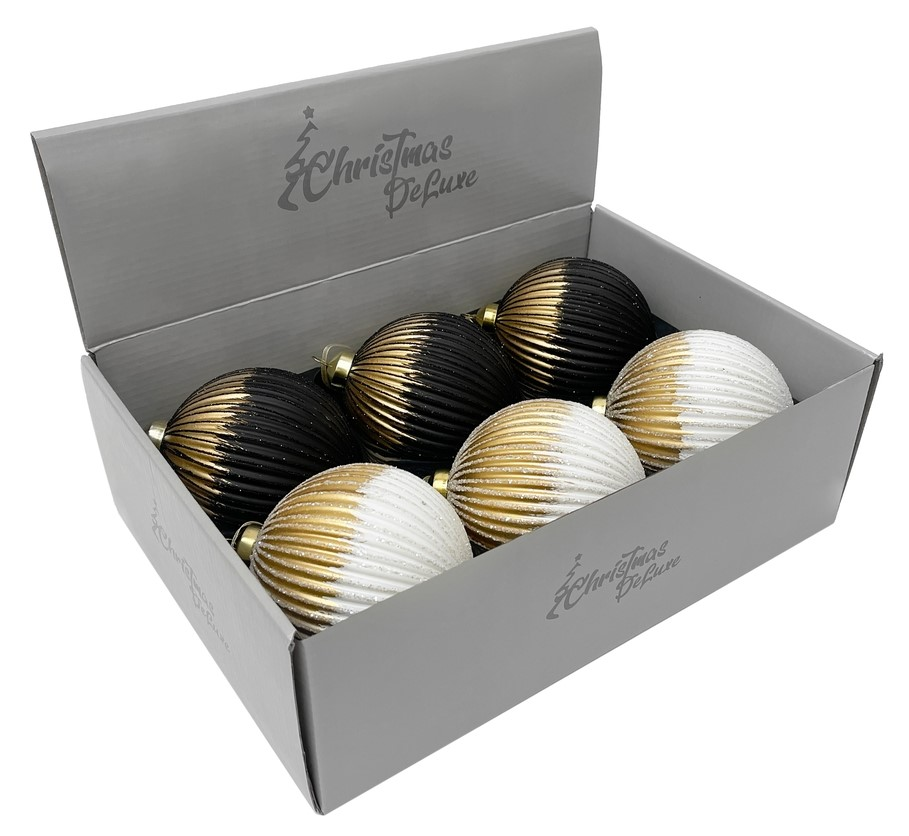 Шар елочный ChristmasDeLux ребристый с золотом белый и черный, 10см