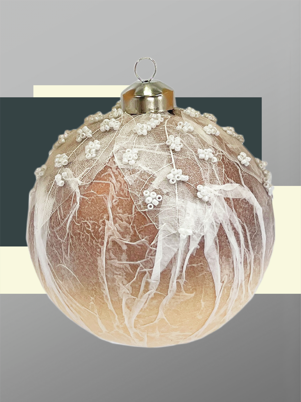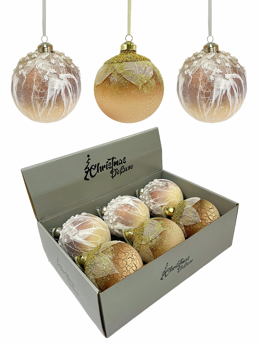 Шар елочный Christmasdeluxe с листьями кремовый, 10см