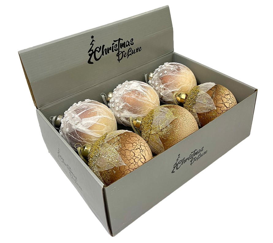 Шар Christmasdeluxe кремовый с листьями, 10см представляет собой украшение традиционной формы. Он служит неотъемлемой частью декора новогодних елей и сосен, может применяться для размещения в жилых комнатах, офисных помещениях, на листьях и стеблях комнатных растений. Изделия выполнены в классическом стиле. С помощью набора шаров одинакового оттенка можно украсить не только новогоднюю елку, но и все окружающее пространство. Предназначен для использования внутри помещения.