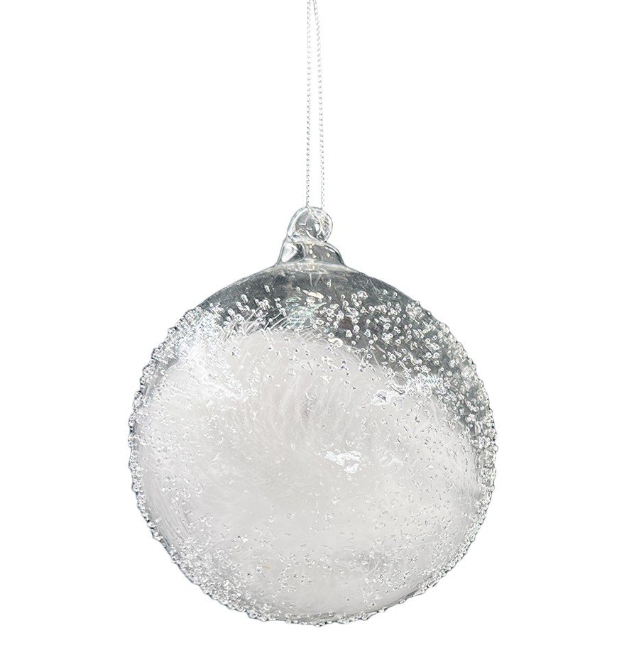 Шар елочный Christmasdeluxe с белым пером прозрачный, 10см
