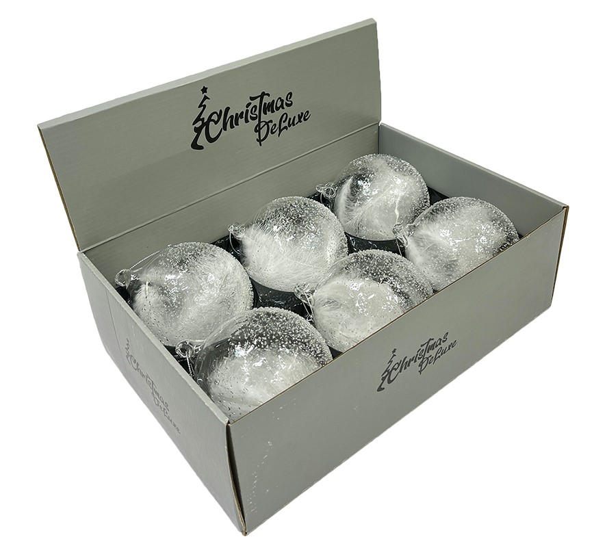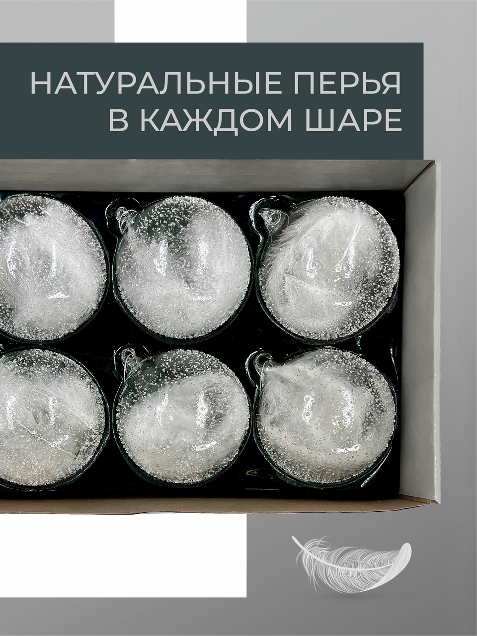 Шар Christmasdeluxe прозрачный с белым пером, 10см - изделие прекрасно подойдет для украшения ели, декорирования различных новогодних композиций. Эффектно будет смотреться на ветвях обычного дерева, стилизованного под новогоднее.