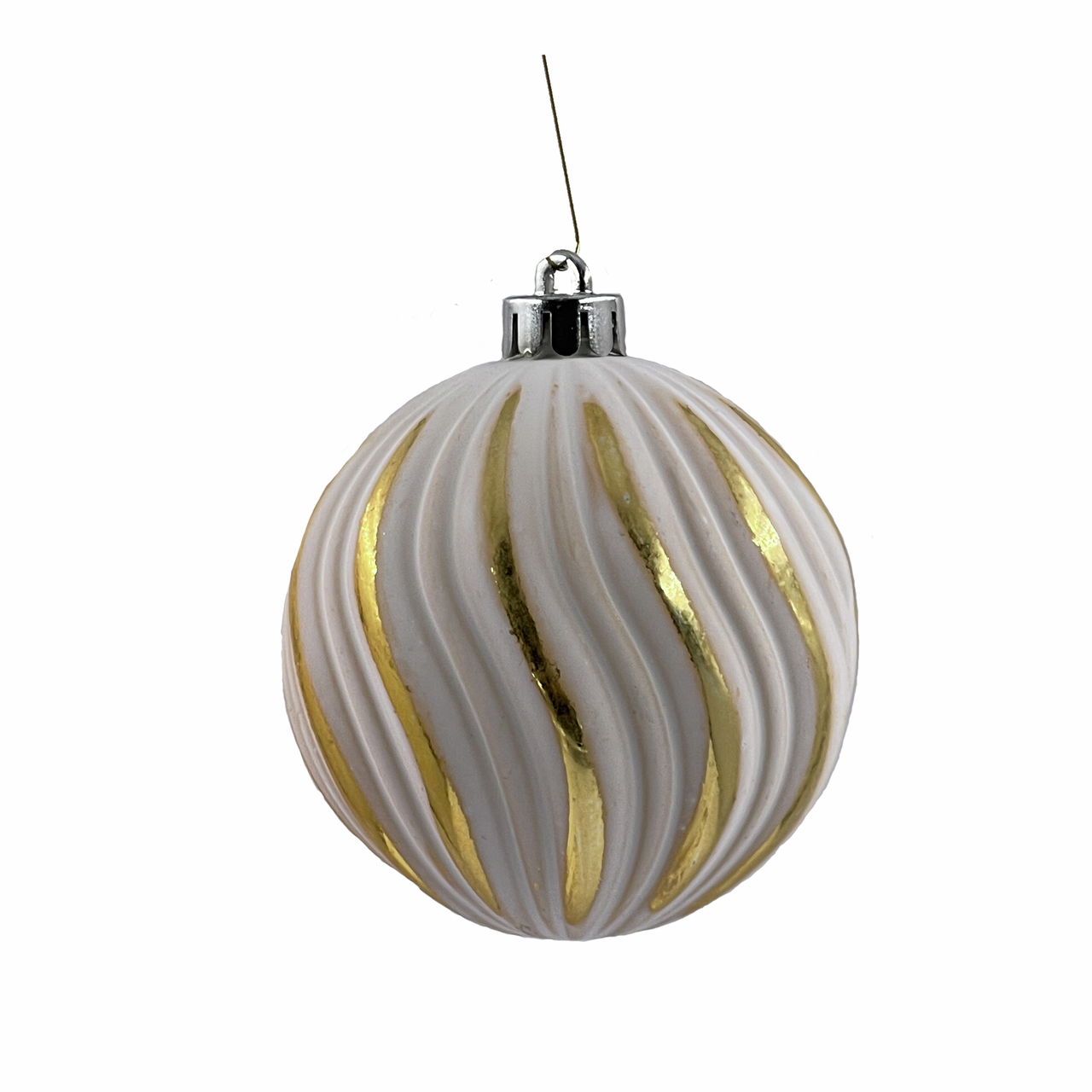 Шар елочный Christmasdeluxe ребристый белый, 8см