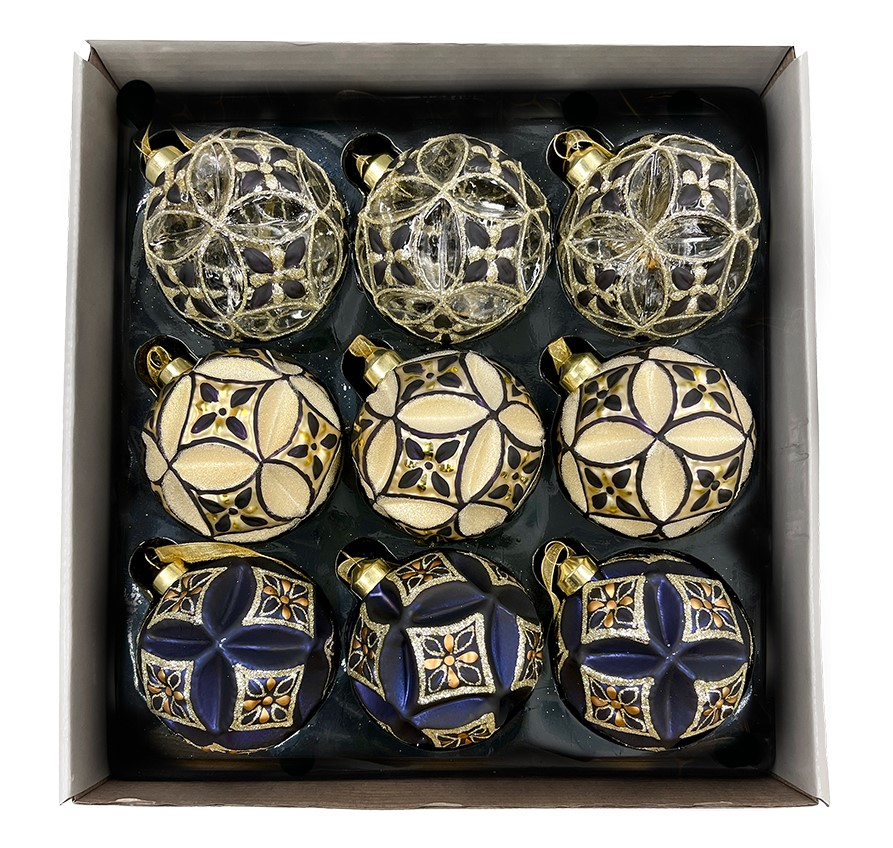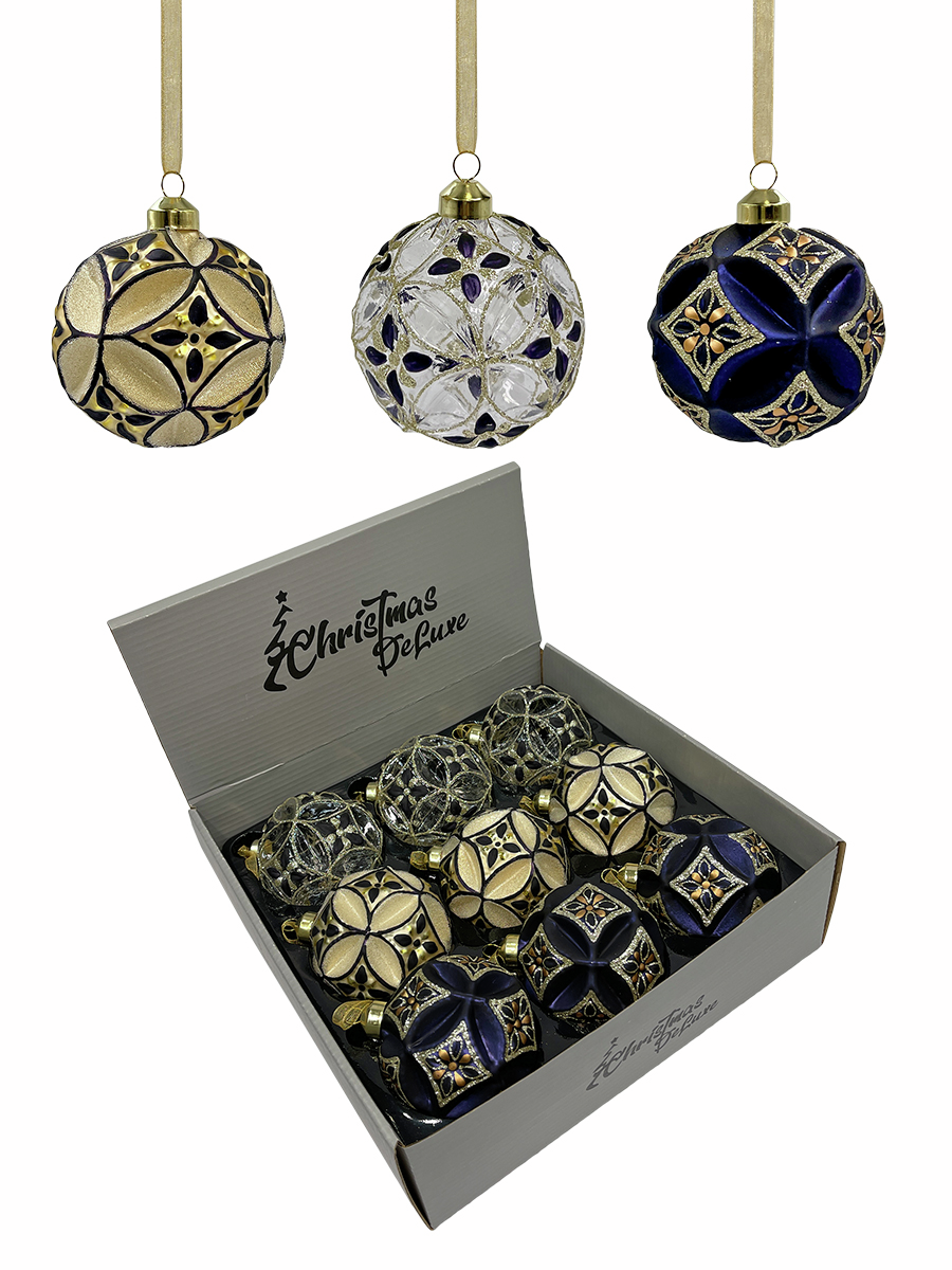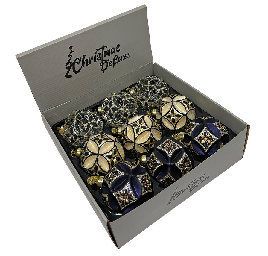 Шар Christmasdeluxe резной прозрачный, бежевый и синий, 8см предназначен для использования внутри помещения. Он служит неотъемлемой частью декора новогодних елей и сосен, может применяться для размещения в жилых комнатах, офисных помещениях, на листьях и стеблях комнатных растений.