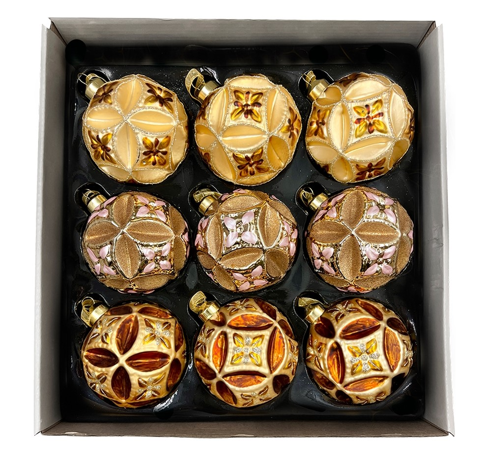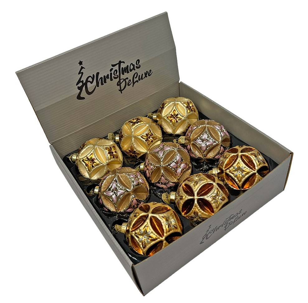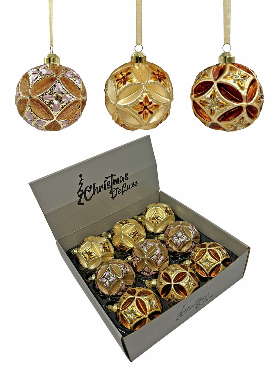 Шар Christmasdeluxe резной золото, 8см предназначен для использования внутри помещения. Он служит неотъемлемой частью декора новогодних елей и сосен, может применяться для размещения в жилых комнатах, офисных помещениях, на листьях и стеблях комнатных растений.