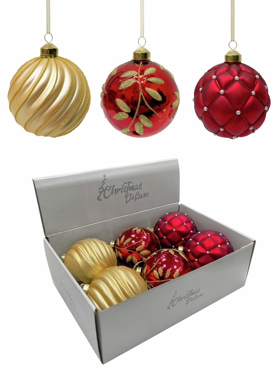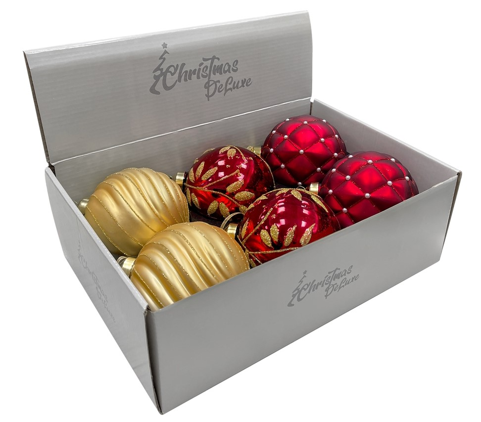 Шар елочный Christmasdeluxe золотой, бордовый и красный, 10см