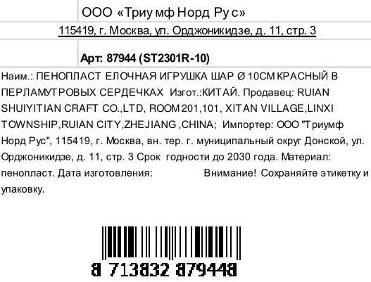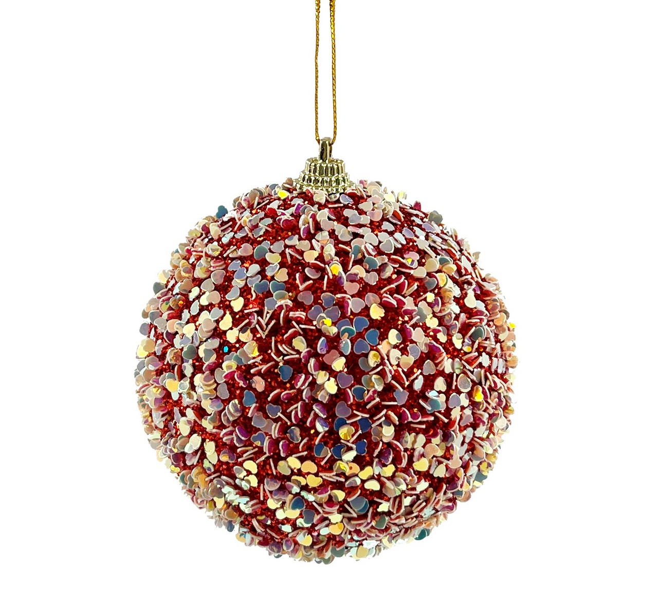 Шар елочный Christmasdeluxe красный в сердечках пенопласт, 10см