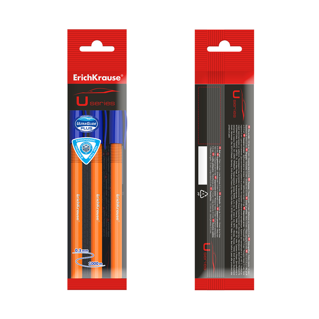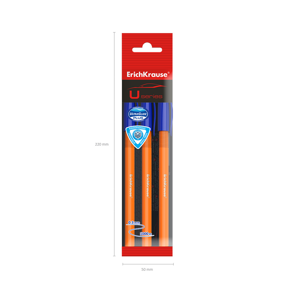 Ручки шариковые Erich Krause U-108 Orange Stick 1мм, 3шт