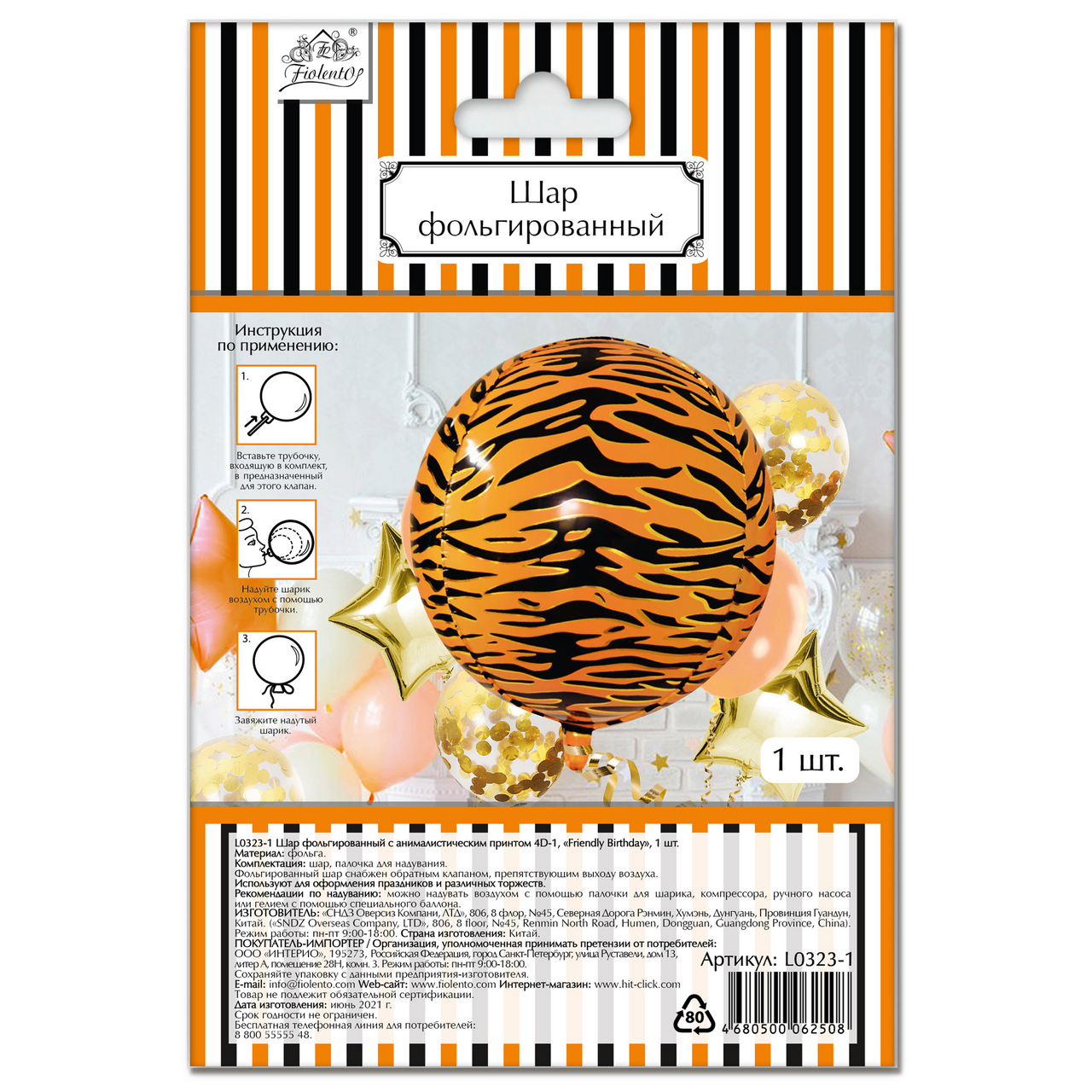 Шар фольгированный Fiolento с анималистическим принтом 4D-1 1 шт
