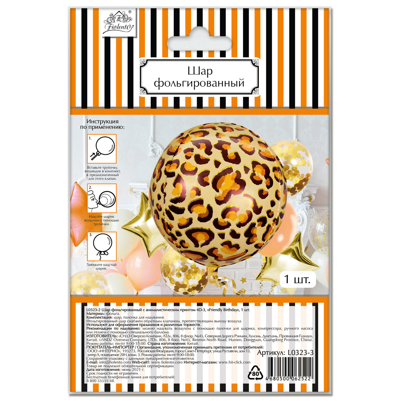 Шар фольгированный Fiolento с анималистическим принтом 4D-3 1 шт