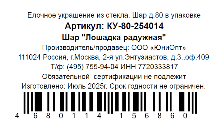 Шар елочный Коломеев Лошадка радужная, 8см
