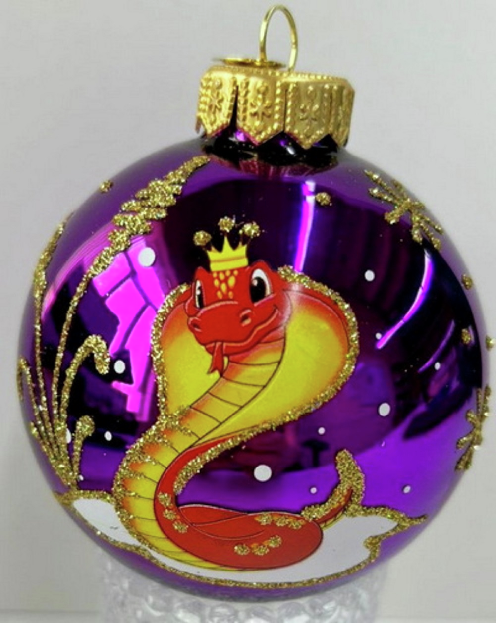 Шар Коломеев Змея-королева, 8см - это оригинальный подарок. Изображение дракона выполнено в яркой цветовой гамме, что придает игрушке особый шарм и привлекательность. Шар символизирует год Змеи и станет отличным дополнением к новогоднему декору. Подарочная упаковка обеспечивает сохранность игрушки и делает ее идеальным подарком для близких или друзей на Новый Год.